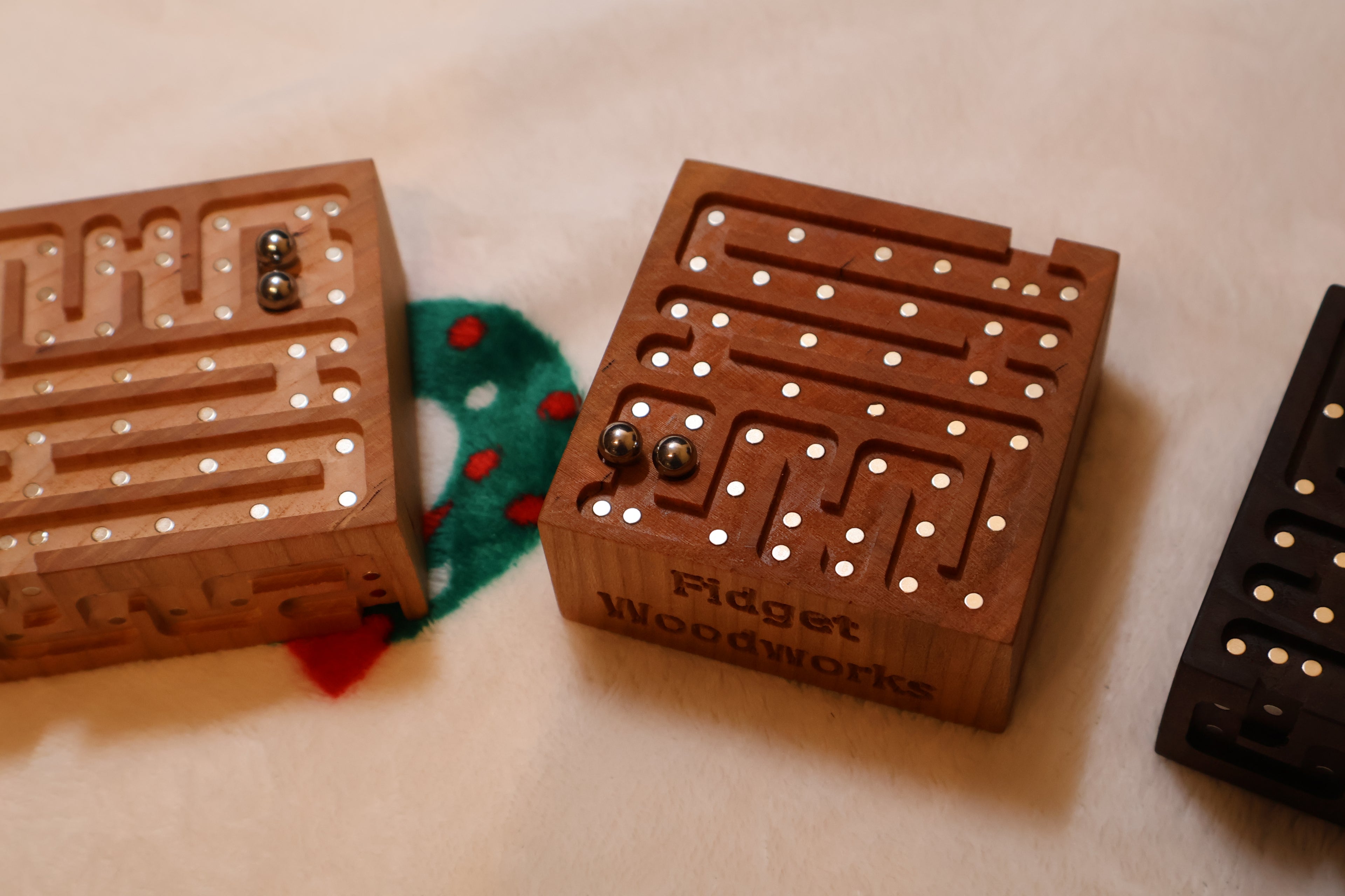 Elevate your fidget experience with a wooden masterpiece. Patent Pending